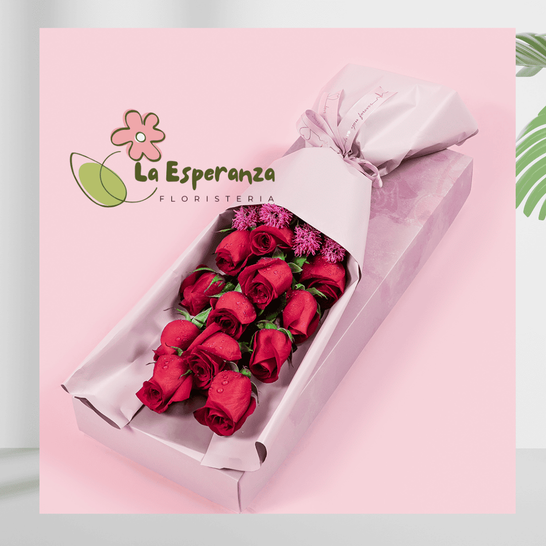 Por medio de este delicado diseño podrás expresar todo tu amor y afecto a tu ser querido, regala esta linda caja con 12 rosas rojas y follajes verdes y demuéstrale lo importante que es para ti. La caja lleva su respectiva tapa. Sugerimos que acompañes este diseño con chocolates, peluches o vinos para hacer aún más especial tu detalle, en el siguiente paso de la compra puedes agregar a tu orden estos productos si lo deseas.