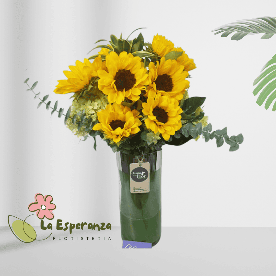 Los girasoles son flores tropicales que representan energia y calidez, sorprende a ese ser especial enviando este lindo jarrón de vidrio con 12 girasoles y follajes verdes. Sugerimos que acompañes este diseño con chocolates, peluches o vinos para hacer aún más especial tu detalle, en el siguiente paso de la compra puedes agregar a tu orden estos productos si lo deseas.