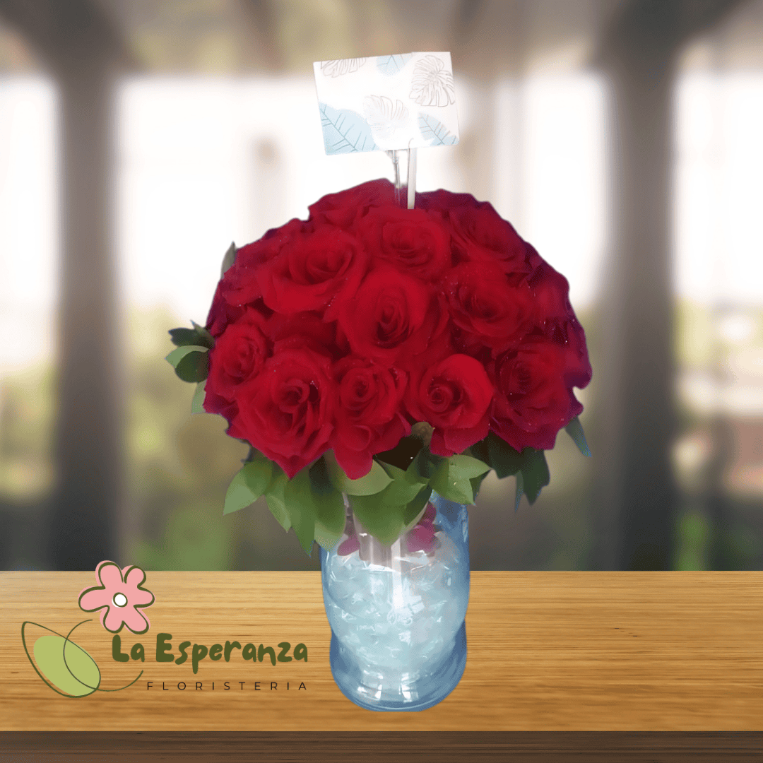 Cada vez que desees expresar tu amor regala rosas rojas, que mejor que este bello y elegante diseño floral elaborado sobre un jarrón de vidrio con 24 rosas y follajes verdes, es ideal para enamorados. Sugerimos que acompañes este diseño con chocolates, peluches o vinos para hacer aún más especial tu detalle, en el siguiente paso de la compra puedes agregar a tu orden estos productos si lo deseas.