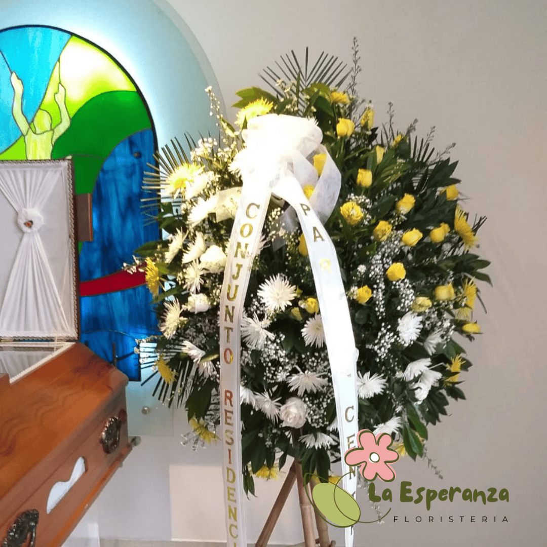 En momentos difíciles como la pérdida de un ser querido siempre queremos manifestar nuestras condolencias, este hermoso pedestal compuesto de rosas blancas, y follajes verdes es ideal para enviar a la funeraria o al lugar en el cual se están realizando las honras fúnebres.
