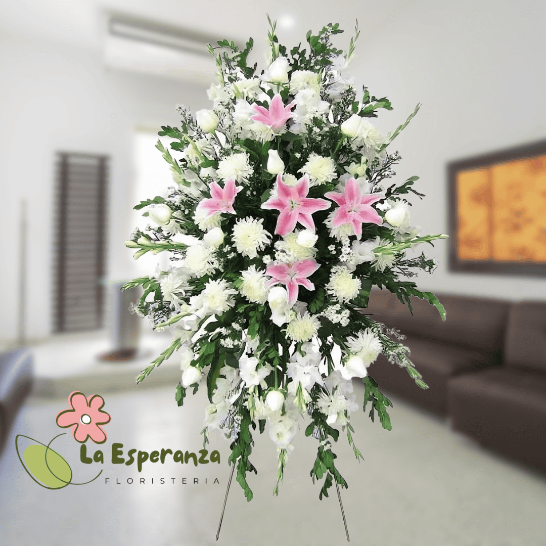 Hay momentos en los que las palabras no son suficientes para expresar el dolor que produce la partida de ese ser querido, expresa tus más sentidas condolencias enviado este lindo diseño elaborado con lirios fucsias, rosas blancas y follajes verdes.